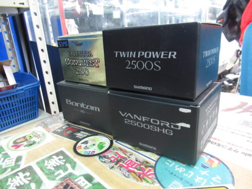 シマノの00カルカッタコンクエスト200、15ツインパワー2500S、20ヴァンフォード2500SHG、22バンタムXGを買取させて頂きました。