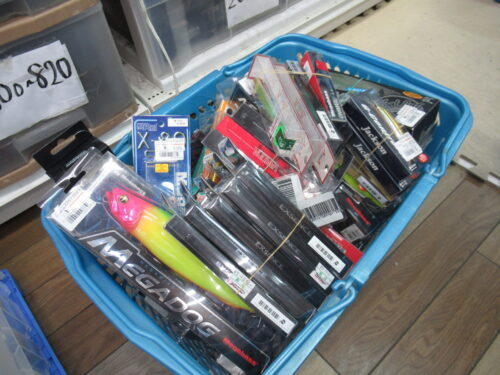 今回のルアーは、クリーニングして値付けし店頭に並べました。