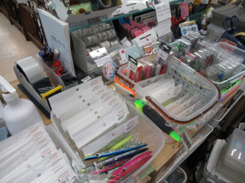 ダイワ、アイマ、アピアのソルトルアーを大量に店頭陳列しました。
