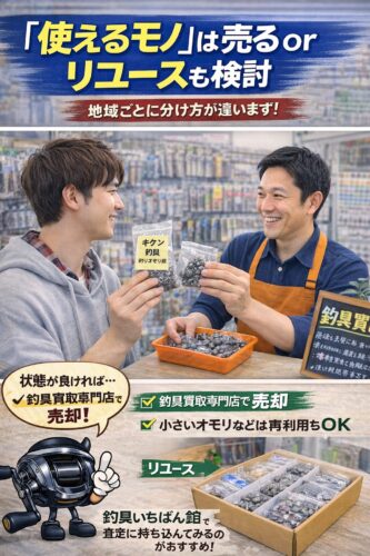 - 状態の良い釣り針やオモリ → 売却(買取)できる可能性あり