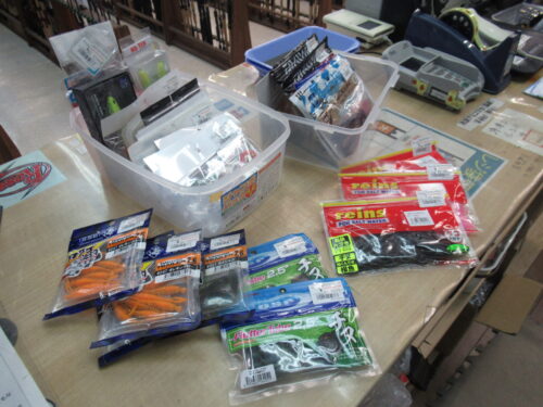 OSP、レインズ、一誠などのチニング用ワーム、ライトソルトワームなどを店頭陳列しました。