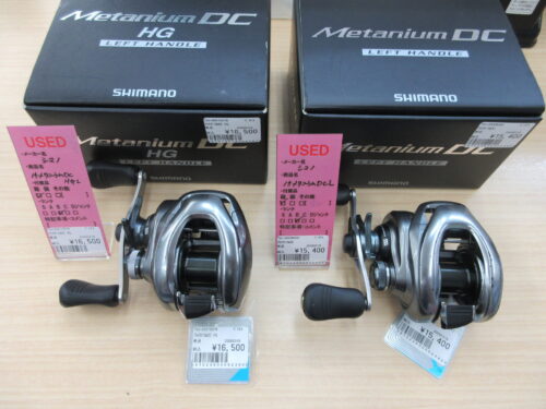 本日はシマノの15メタニウムDCLと15メタニウムDCHGLを店頭に並べました。