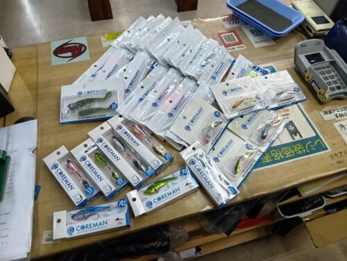 本日はコアマンの未使用ルアーを30点程まとめて買取りさせていただきました。