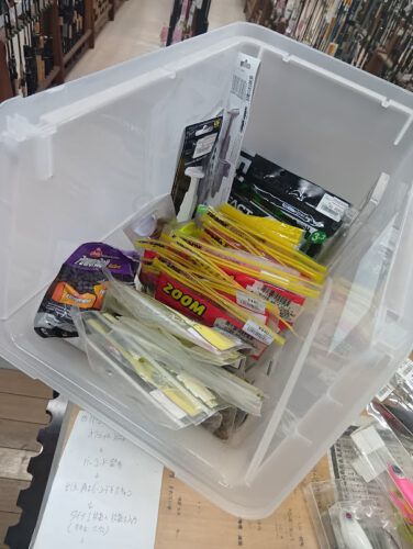 OSP、イマカツ、一誠などのバスプラグからズームのワームなどを店頭陳列しました。